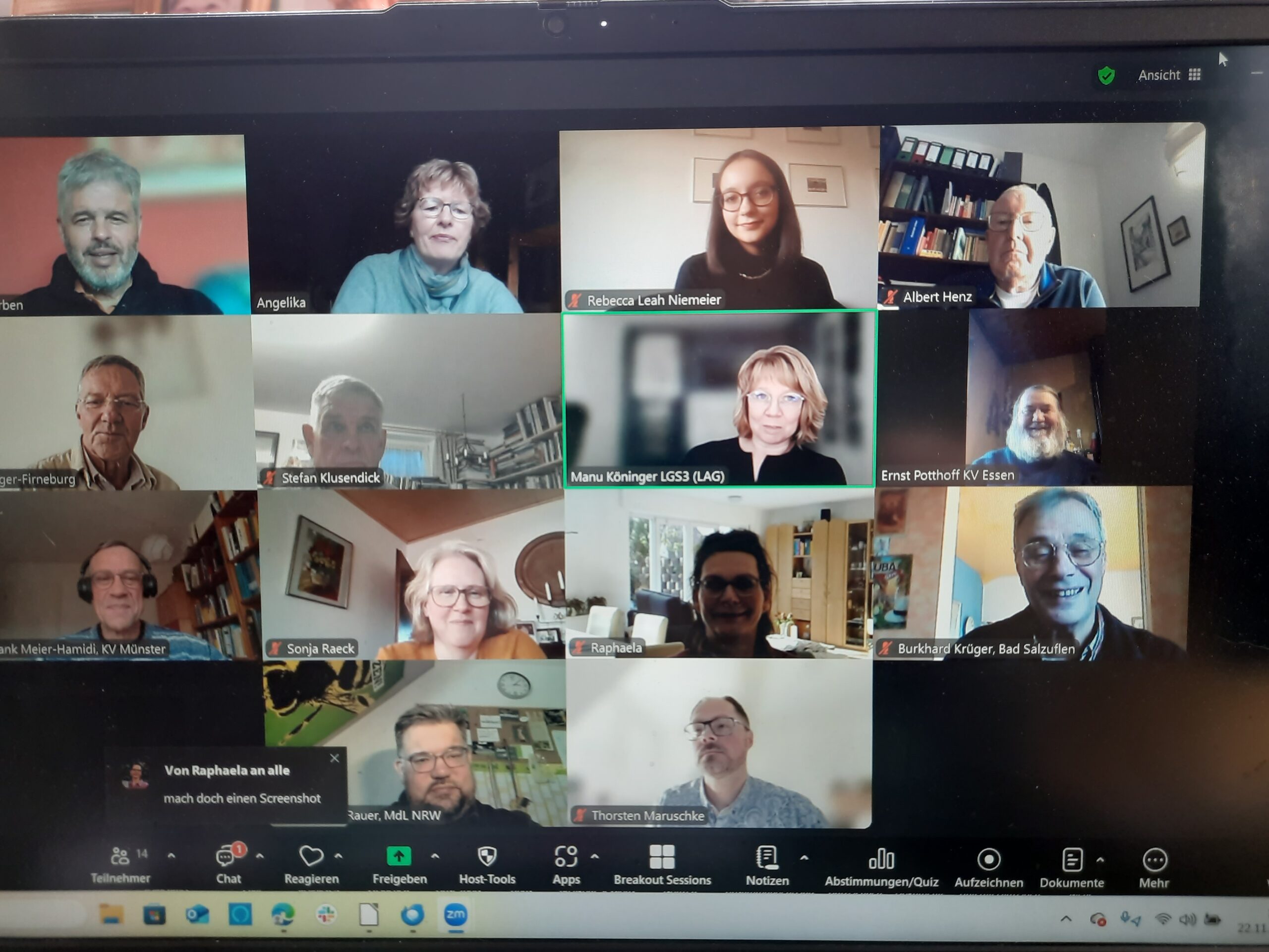 Ausgehend von dem Referat der DFG/VK, das wir auf unserer letzten Sitzung gehört haben, haben wir bei unserer heutigen Sitzung über den „gerechten Krieg“ und einen „gerechten Frieden“ diskutiert. Wir befinden uns heute angesichts des Ukrainekriegs und anderer kriegerischen Auseinandersetzungen auf der Welt in einer deutlich anderen Situation als zu Beginn der 80iger Jahre als die Friedensbewegung in unserer Partei sehr stark war. Was bedeutet Pazifismus heute? Was denken wir Christ*innen darüber? In einer lebhaften Diskussion haben wir uns hierüber ausgetauscht. Da es sich hierbei um ein Bundesthema handelt, haben wir darauf verzichtet, zu dem Thema ein Positionspapier zu verfassen. Unsere BAG-Delegierte werden aber die verschiedenen Gesichtspunkte unserer Diskussion in die Diskussion auf Bundesebene einfließen lassen.